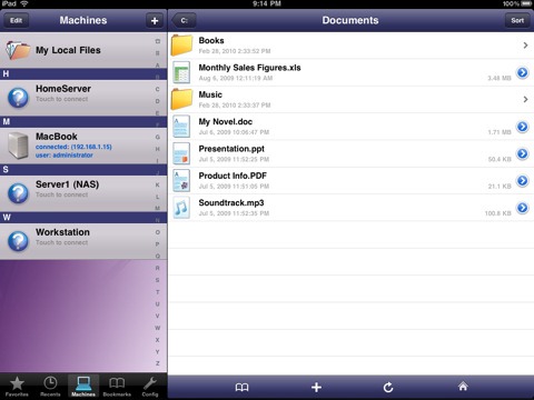 I really like this app for a slew of reasons. First, you can move and copy files around on the remote machine without sitting in front of it. You can view files directly from your "server" without actually storing them on your device. This basically means that you get unlimited storage space for the iPad. The thing I really like though is that I can get to files I don’t want with me all the time. For example, I can play music without having it take up space. I can watch a movie without it actually being in the device. I can view docs or scan through images without having them stored locally. It also means that I can grab files with ease. Normally you have to push files to the iPad while sitting at the desktop. This turns things around and makes the iPad the client. You can grab whatever files you need from wherever you happen to be. I find this method to be much more convenient.